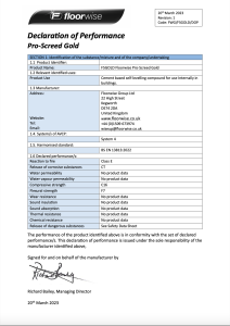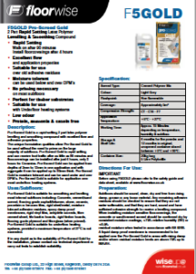 Pro-Screed Gold is a versatile 2 part latex polymer levelling and smoothing compound with excellent flow and adhesion properties. The unique formulation qualities allow the compound to be installed without the need to prime on most sub floors. The ultra fast setting compound can be walked on after as little as 90 minutes and floorcoverings can be installed after just 4 hours. It can applied from depths of 2mm to 12mm in one application and up to 30mm with aggregate. It is moisture tolerant and can be laid under and over DPM’s and can be applied over most underfloor heating systems.